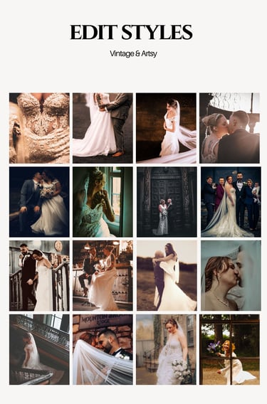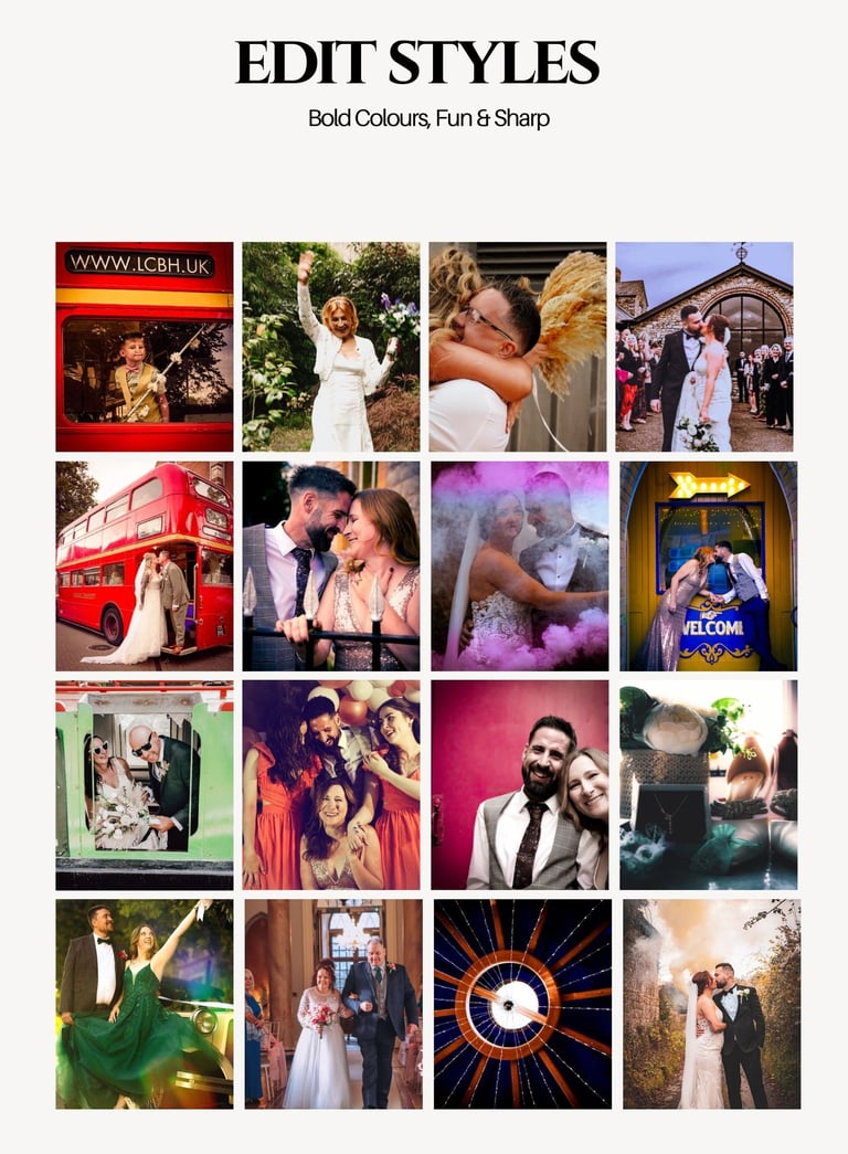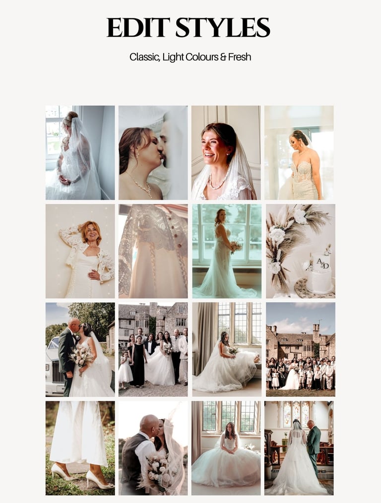 The three options below are some examples of previous editing styles from some of our gorgeous weddings. All packages include black & white edited images as standard.